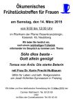 Rückkehr: 18:00 Uhr ... mehr Ökumenisches Frühstückstreffen für Frauen am Samstag, den 26. September 2015, von 9 bis 12 Uhr in der Corneliuskirche, Wendelsteinstraße 1, Neubiberg!