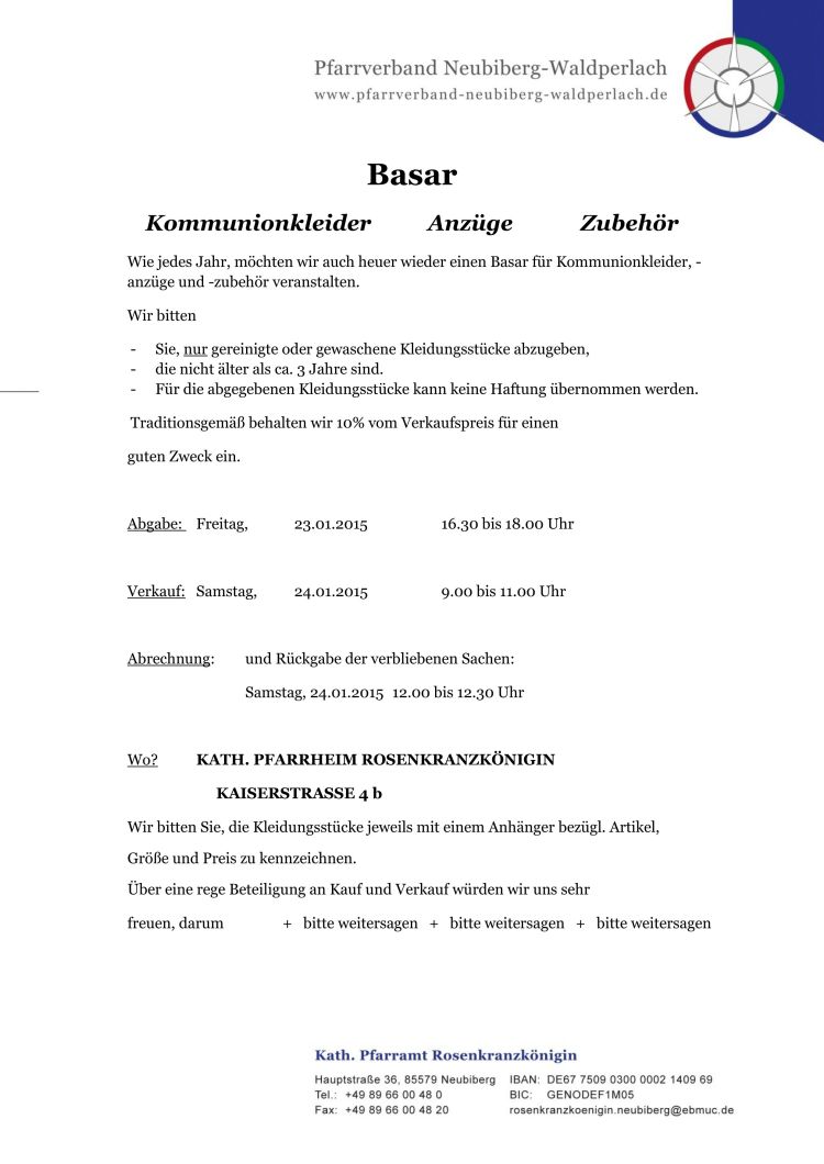 Wie jedes Jahr, möchten wir auch heuer wieder einen Basar für Kommunionkleider, -