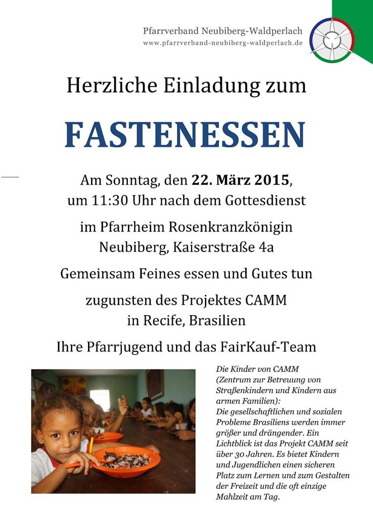 Herzliche Einladung zum Fastenessen am Sonntag, den 22. März 2015, um 11:30 Uhr nach dem Gottesdienst im Pfarrheim Rosenkranzkönigin Neubiberg, Kaiserstraße 4b