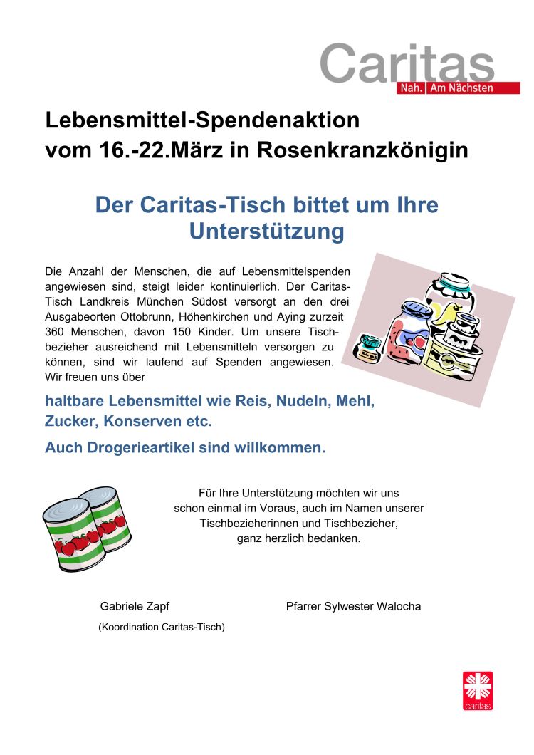 wir würden uns sehr freuen, wenn Sie sich auch dieses Jahr wieder an einer Lebensmittelspendenaktion für den Caritas Tisch in der Fastenzeit beteiligen würden.