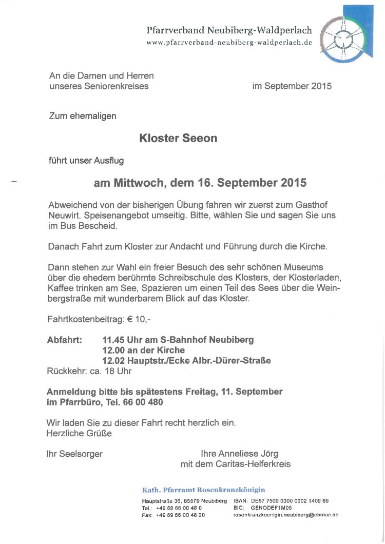 Anmeldung bitte bis spätestens Fr. 11.09. im Pfarrbüro. Der Fahrtkostenbeitrag beträgt 10 EUR.