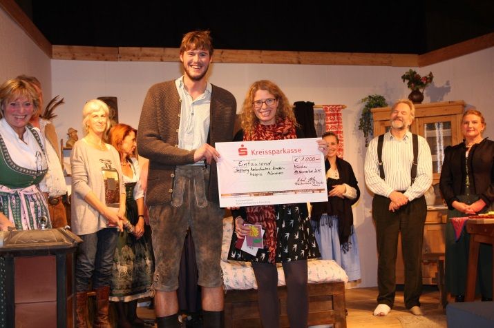 Der Theaterkreis St. Bruder Klaus hat an zwei Novemberwochenenden das Stück "Da Pfenningfuchser" aufgeführt. Wie jedes Jahr geht ein Großteil des Reinerlöses an eine soziale Einrichtung. In diesem Jahr wurden 1.000 Euro an die Stiftung Ambulantes Kinderhospiz München (AKM) gespendet. Frau Angela Zacher, Leiterin der AKM-Öffentlichkeitsarbeit, hat den Scheck glücklich in Empfang genommen. In einer kurzen Rede sprach sie auch über die finanziellen Umstände der Organisation, die bayernweit über 150 Familien von lebensbedrohlich schwersterkrankten Un- und Neugeborenen, Kindern und Jugendlichen professionell betreut.