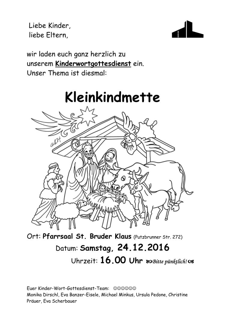Ort: Pfarrsaal St. Bruder Klaus (Putzbrunner Str. 272) Datum: Samstag, 24.12.2016Uhrzeit: 16.00 Uhr