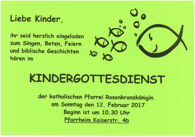 Beginn ist um 10:30 Uhr im Pfarrheim Rosenkranzkönigin, Kaiserstraße 4b.