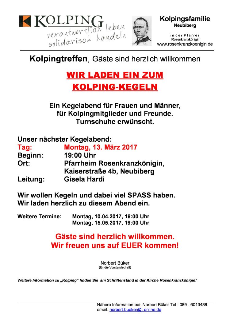 Wir laden ein zum Kegeln mit der Kolpingsfamilie: