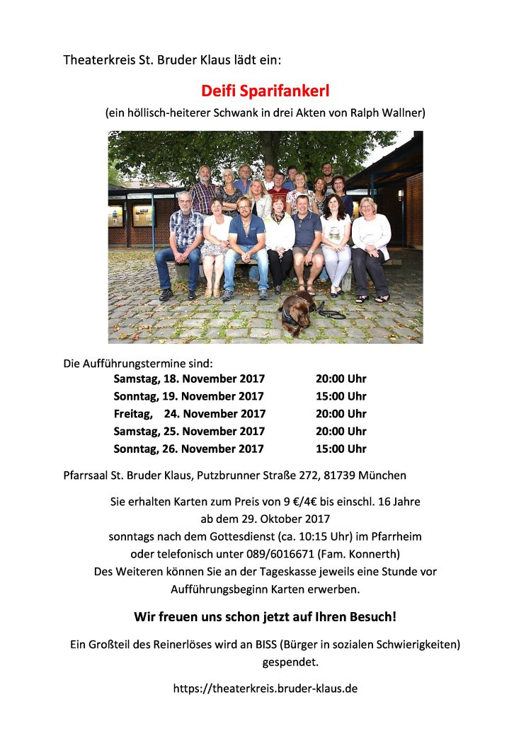 Theaterkreis der Pfarrei St. Bruder-Klaus lädt ein zu: