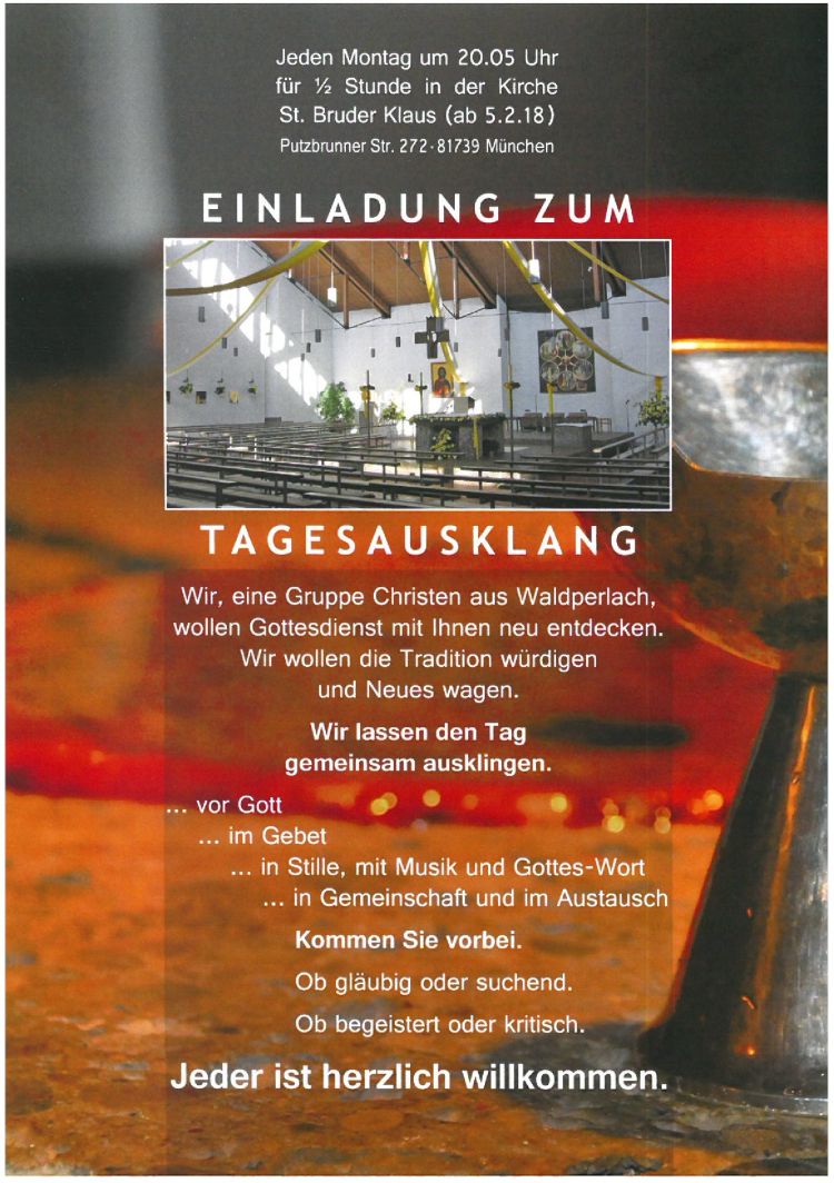 Jeden Montag (ab 05.02.2018) um 20:05 Uhr für 1/2 Stunde in der Kirche St. Bruder Klaus.