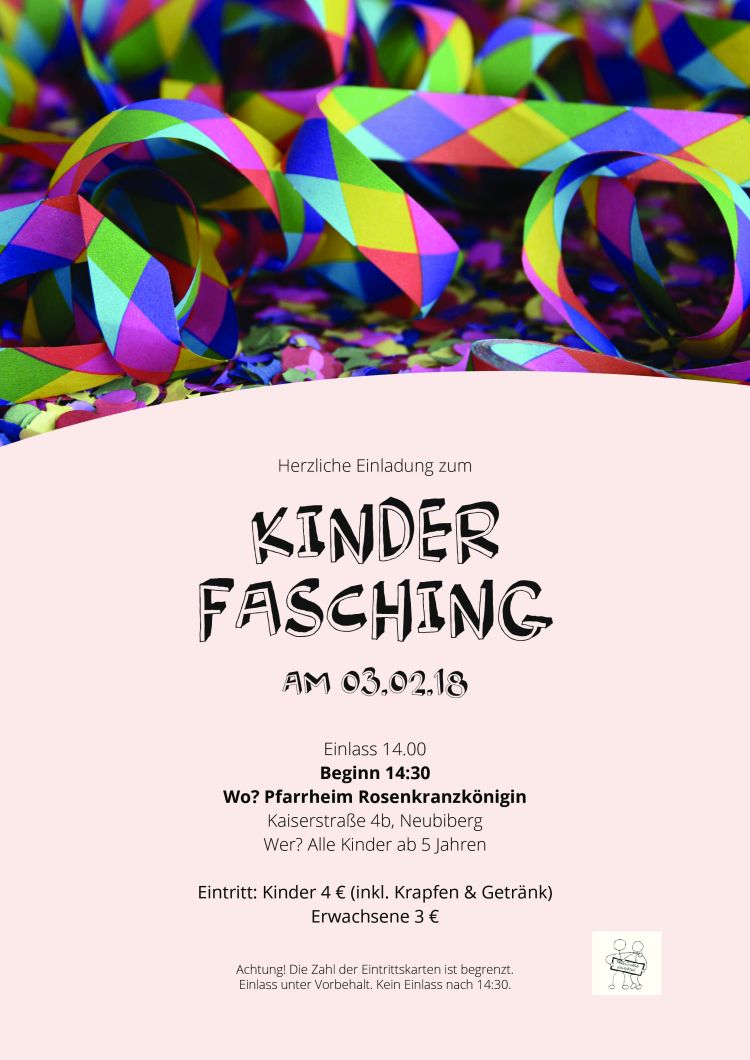 Deine Pfarrjugend ... mehr Die Pfarrei Rosenkranzkönigin veranstaltet auch dieses Jahr wieder ihren traditionellen Kinderfasching, bei dem zwischen Konfetti und Luftschlangen getanzt, gelacht und gespielt wird.