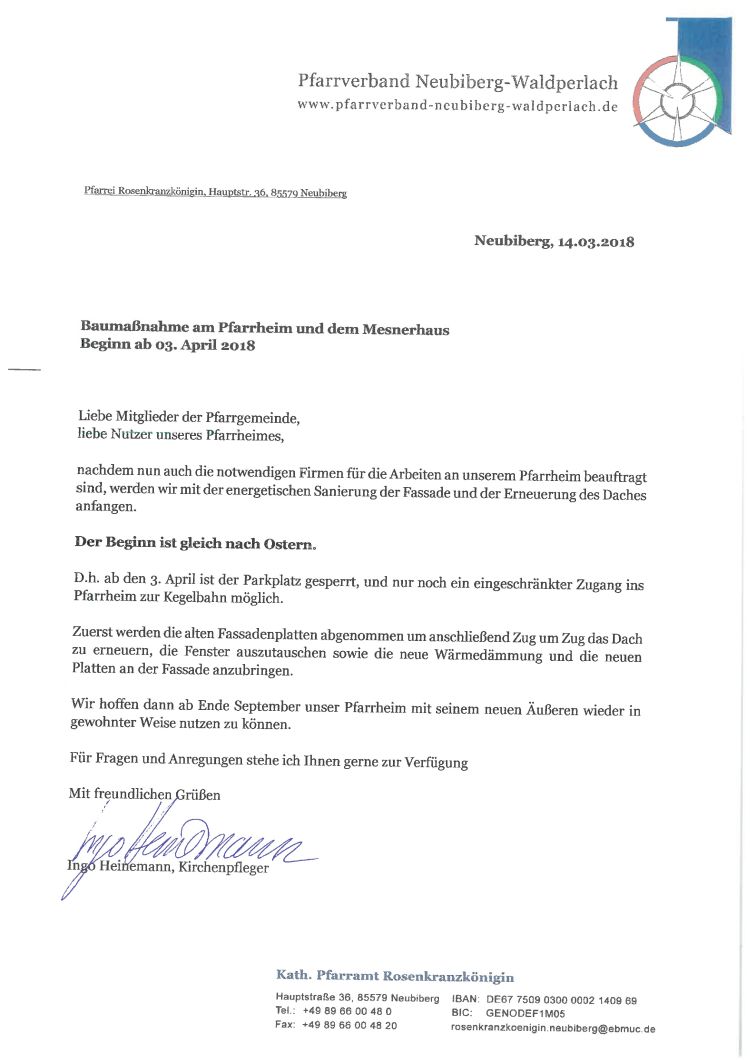 Baumaßnahme am Pfarrheim und Mesnerhaus ab 03.04.2018
