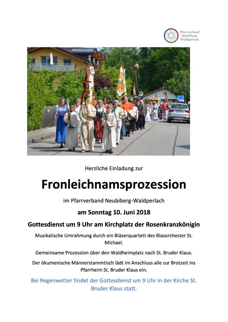 Herzliche Einladung zur Fronleichnamsprozession im Pfarrverband Neubiberg-Waldperlach