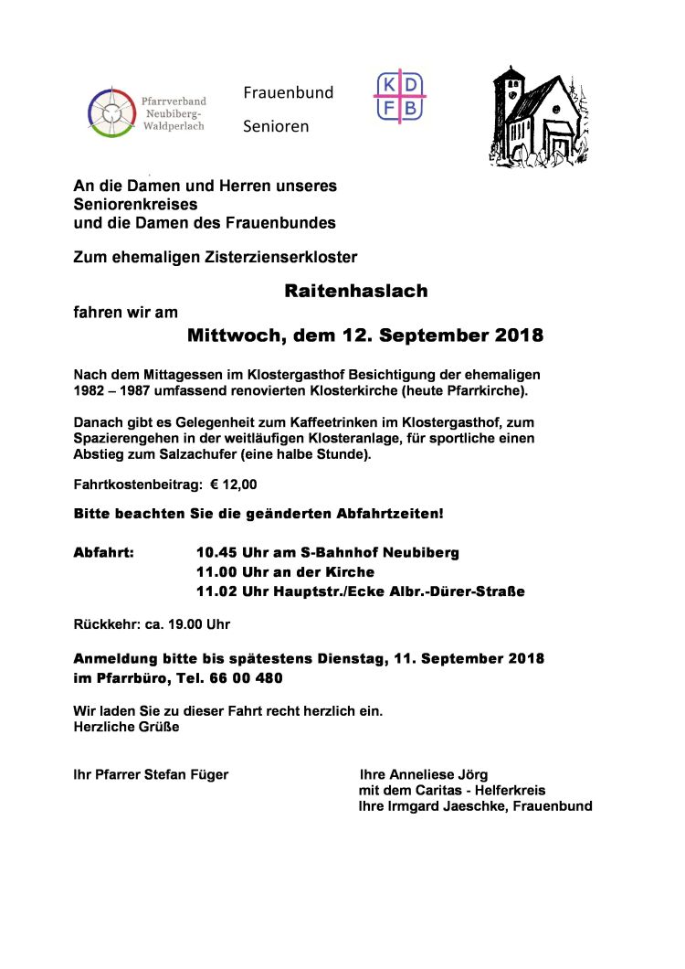 Anmeldung bitte bis spätestens Dienstag, 11. September 2018 im Pfarrbüro, Tel. 089/66 00 480