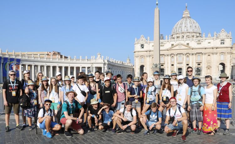 Am Dienstagnachmittag stand dann das absolute Highlight der Wallfahrt auf dem Programm - die Audienz auf dem Petersplatz mit Papst Franziskus. Bei 37 Grad römischer Hitze warteten Ministrantinnen und Ministranten aus der ganzen Welt singend, gut gelaunt und ausgerüstet mit literweise Trinkwasser auf die Ankunft des Papstes. Unter dem lauten Jubel von 60.000 Minis begrüßte der Papst die Wallfahrer während seiner Fahrt über den Platz und feierte im Anschluss mit ihnen einen Wortgottesdienst. Besonders beeindruckt waren viele Neubiberger Jugendliche von der Begegnung mit Papst Franziskus und der verbindenden Kraft des Glaubens, die sie auf dem Petersplatz erlebten. Das Warten in der Hitze hatte sich also gelohnt.