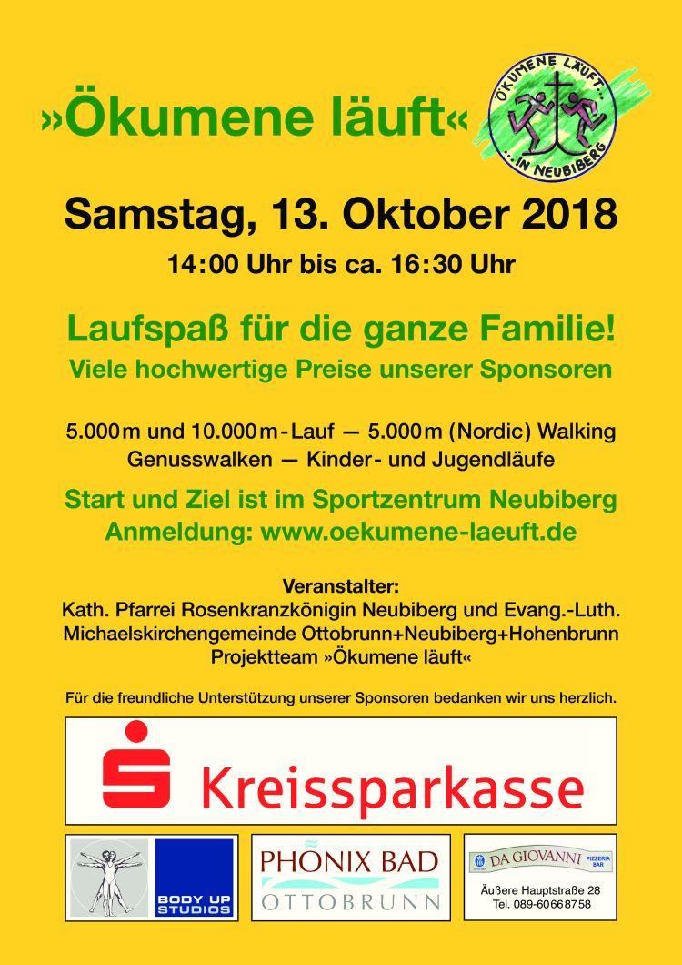 Am Samstag, den 13. Oktober 2018, fällt wieder der Startschuss zu "Ökumene läuft" in Neubiberg