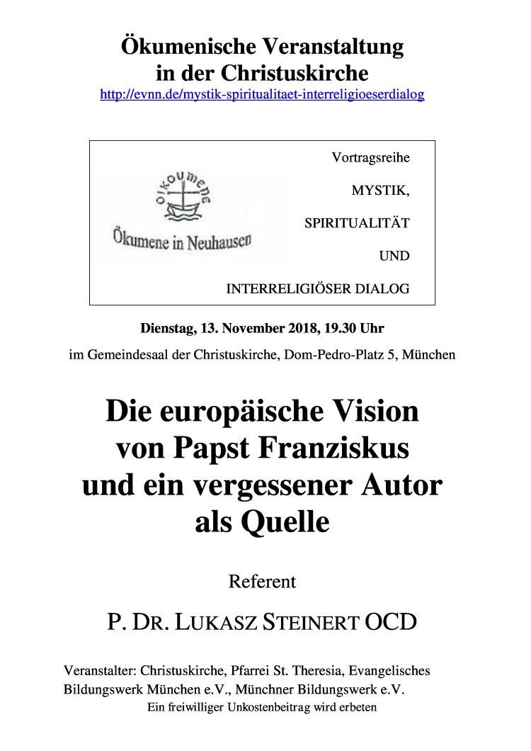 Veranstalter: Christuskirche, Pfarrei St. Theresia, Evangelisches Bildungswerk München e.V., Münchner Bildungswerk e.V.
