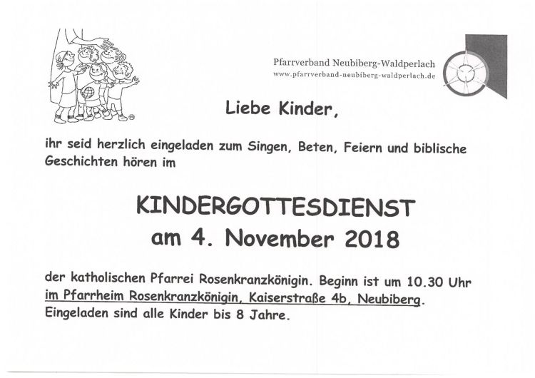 Beginn ist um 10:30 Uhr im Pfarrheim Rosenkranzkönigin, Kaiserstraße 4b, Neubiberg.