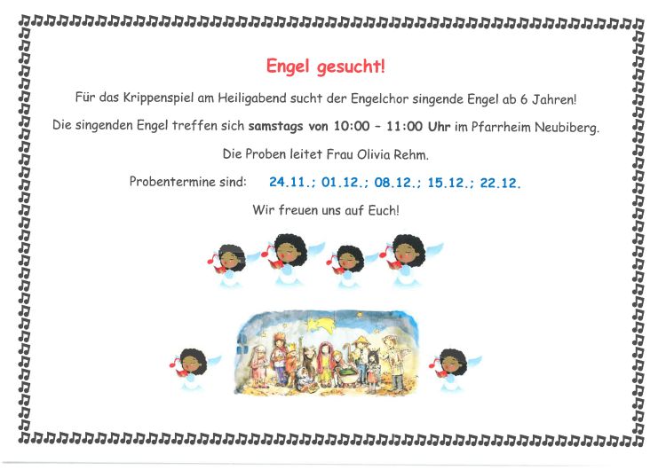 Für das Krippenspiel an Heiligabend sucht der Engelchor singende Engel ab 6 Jahren!