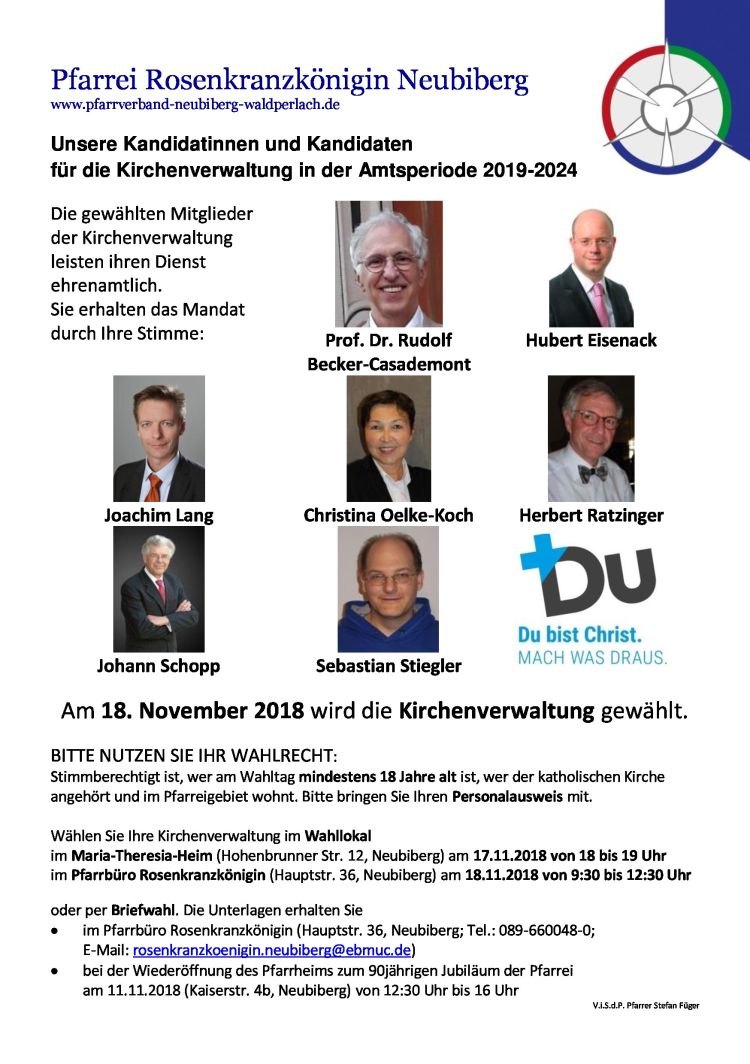 Am 17./18. November 2018 wird die Kirchenverwaltung in der Pfarrei Rosenkranzkönigin gewählt.