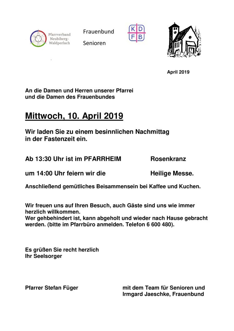 An die Damen und Herren unseres Pfarrverbands und die Damen des Frauenbundes