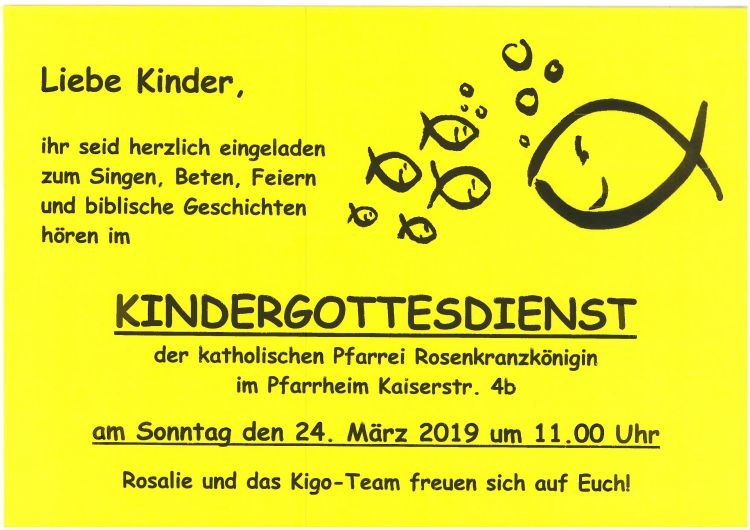 der katholischen Pfarrei Rosenkranzkönigin im Pfarrheim Rosenkranzkönigin, Kaiserstraße 4b, am Sonntag, den 24. März 2019 um 11:00 Uhr.