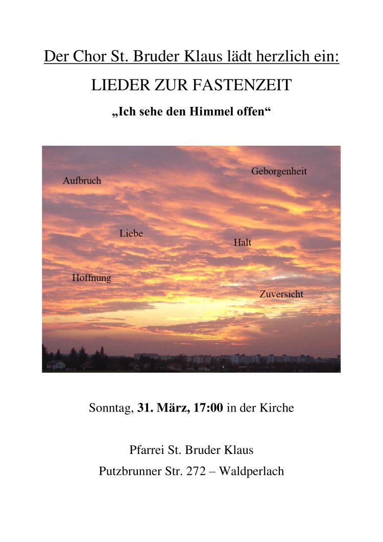 Am Sonntag, den 31. März 2019, um 17:00 in der Pfarrkirche St. Bruder Klaus, Putzbrunner Straße 272, Waldperlach / München.
