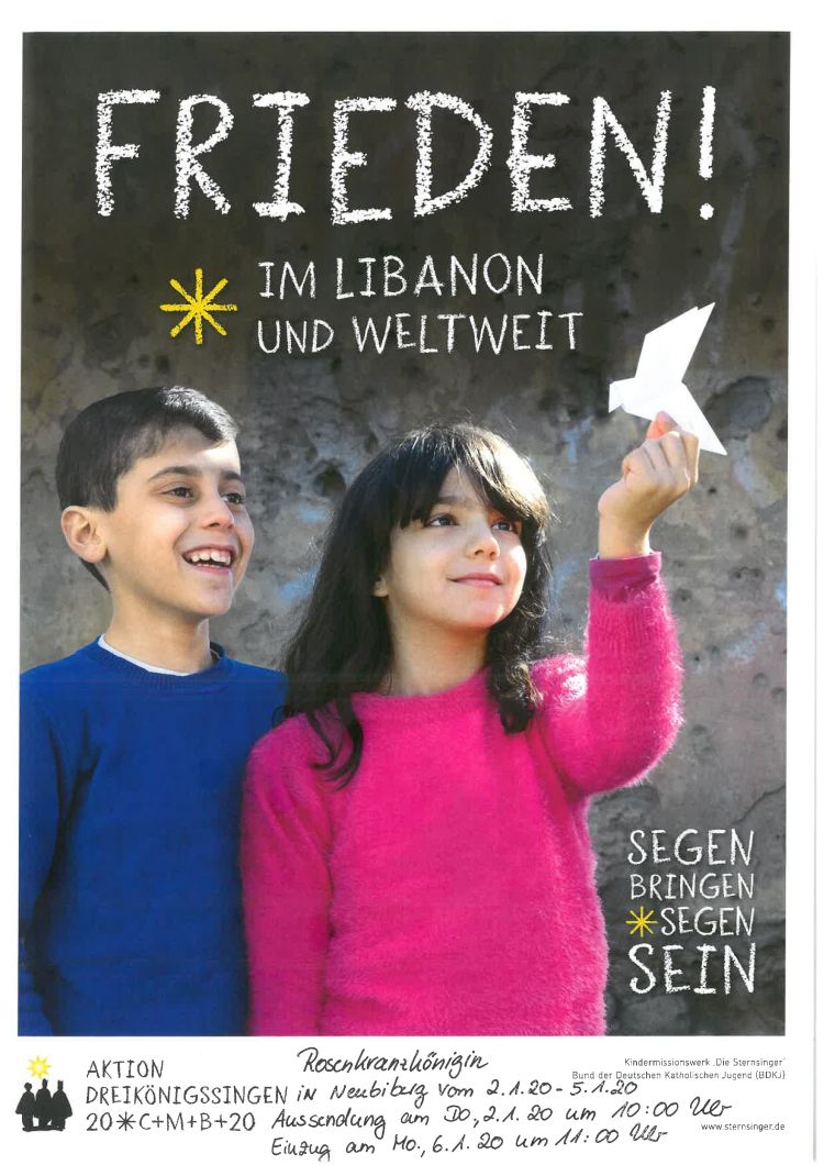 Das Kindermissionswerk „Die Sternsinger“ und der Bund der Deutschen Katholischen Jugend wollen mit ihrer Aktion zum Beginn des Jahres 2020 die Lage der Kinder im Libanon und das Thema „Frieden“ in den Blick rücken.