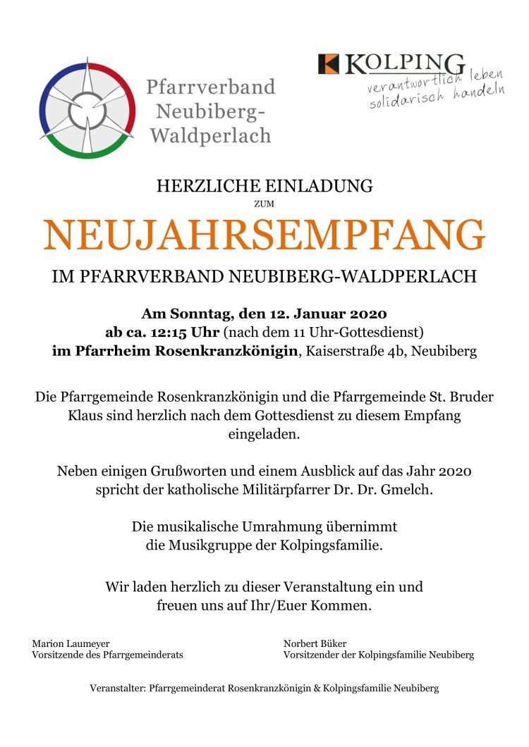 Am Sonntag, den 12. Januar 2019 ab ca. 12:15 Uhr (nach dem 11:00 Uhr-Gottesdienst) im Pfarrheim Rosenkranzkönigin, Kaiserstraße 4b, Neubiberg