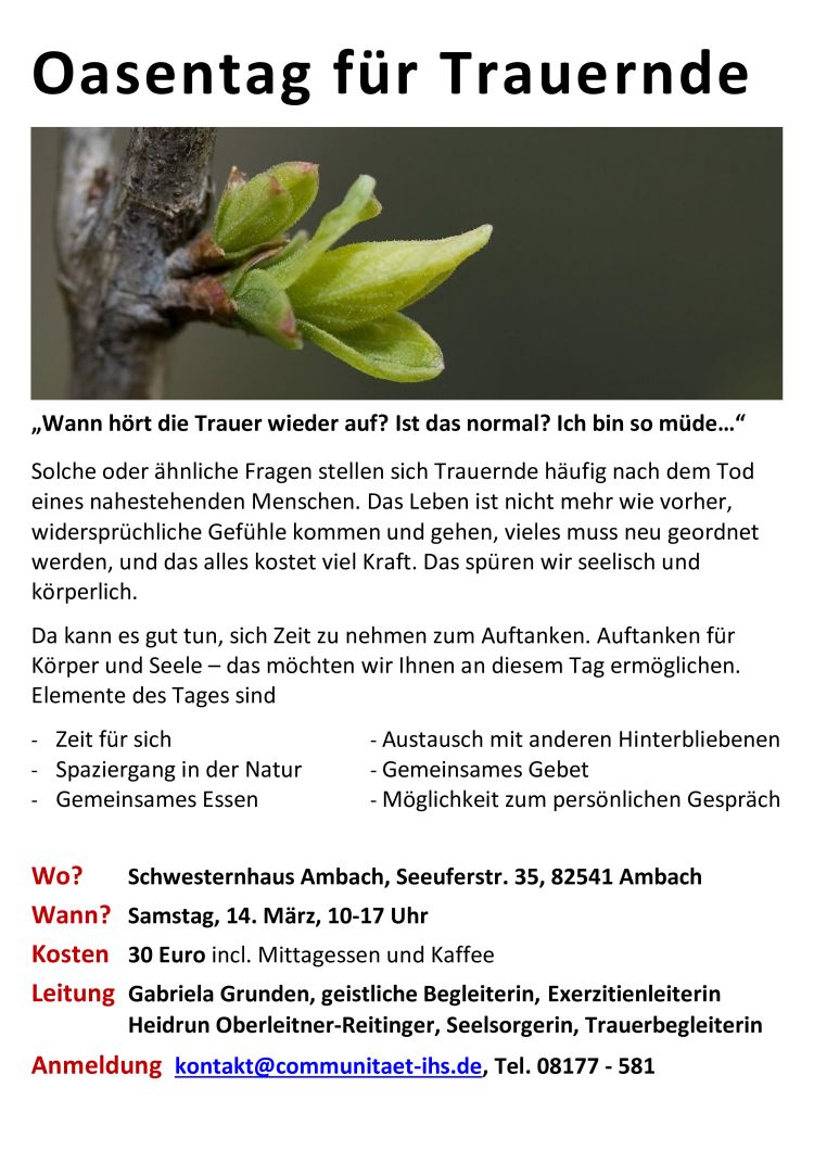 Anmeldung: kontakt@communitaet-ihs.de, Telefon 08177 581