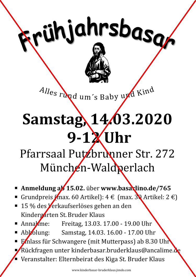 Frühjahrsbasar des Kindergartens St. Bruder Klaus im Pfarrsaal Putzbrunner Straße 272, München-Waldperlach, Samstag, 14.03.2020, 09:00 Uhr bis 12:00 Uhr (für werdende Mütter nur mit Mutterpass: ab 08:30 Uhr)