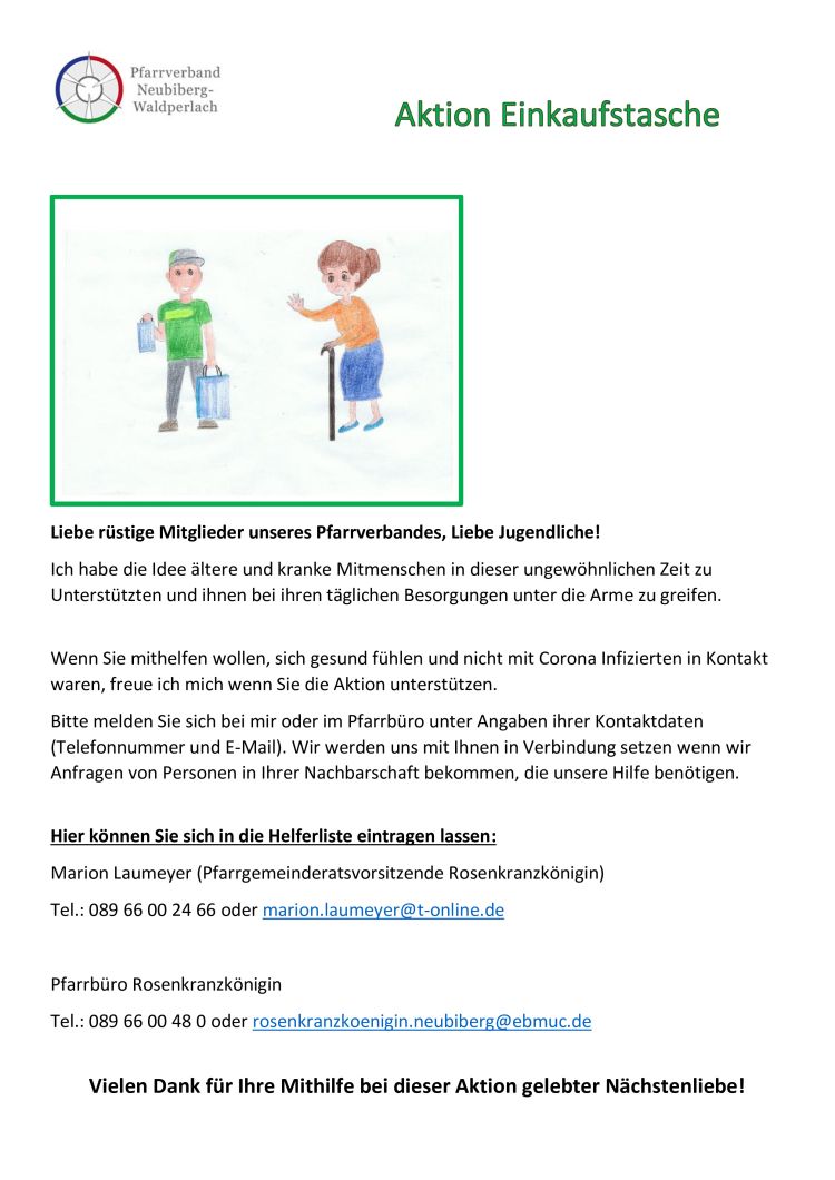 Bitte melden Sie sich bei mir oder im Pfarrbüro unter Angaben ihrer Kontaktdaten (Telefonnummer und E-Mail). Wir werden uns mit Ihnen in Verbindung setzen wenn wir Anfragen von Personen in Ihrer Nachbarschaft bekommen, die unsere Hilfe benötigen.
