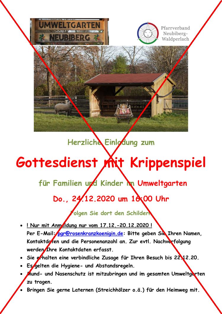 Herzliche Einladung zum Gottesdienst mit Krippenspiel für Familien und Kinder im Umweltgarten