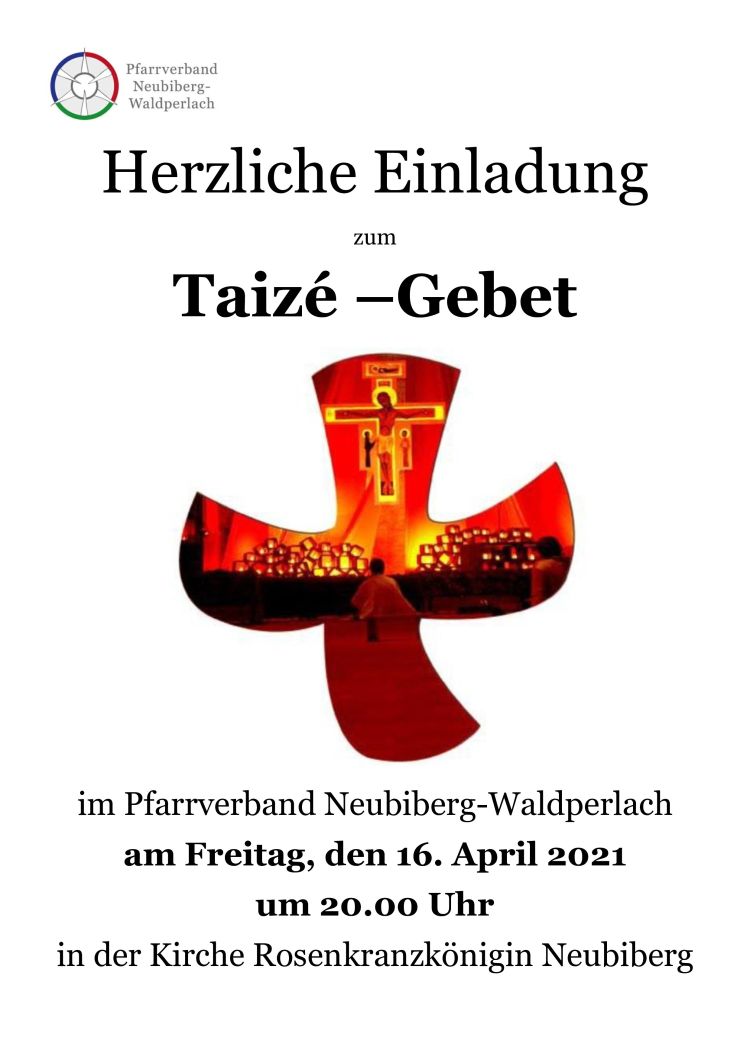 Herzliche Einladung zum Taize-Gebet im Pfarrverband Neubiberg-Waldperlach am Freitag, den 16. April, um 20:00 Uhr in der Kirche Rosenkranzkönigin Neubiberg.