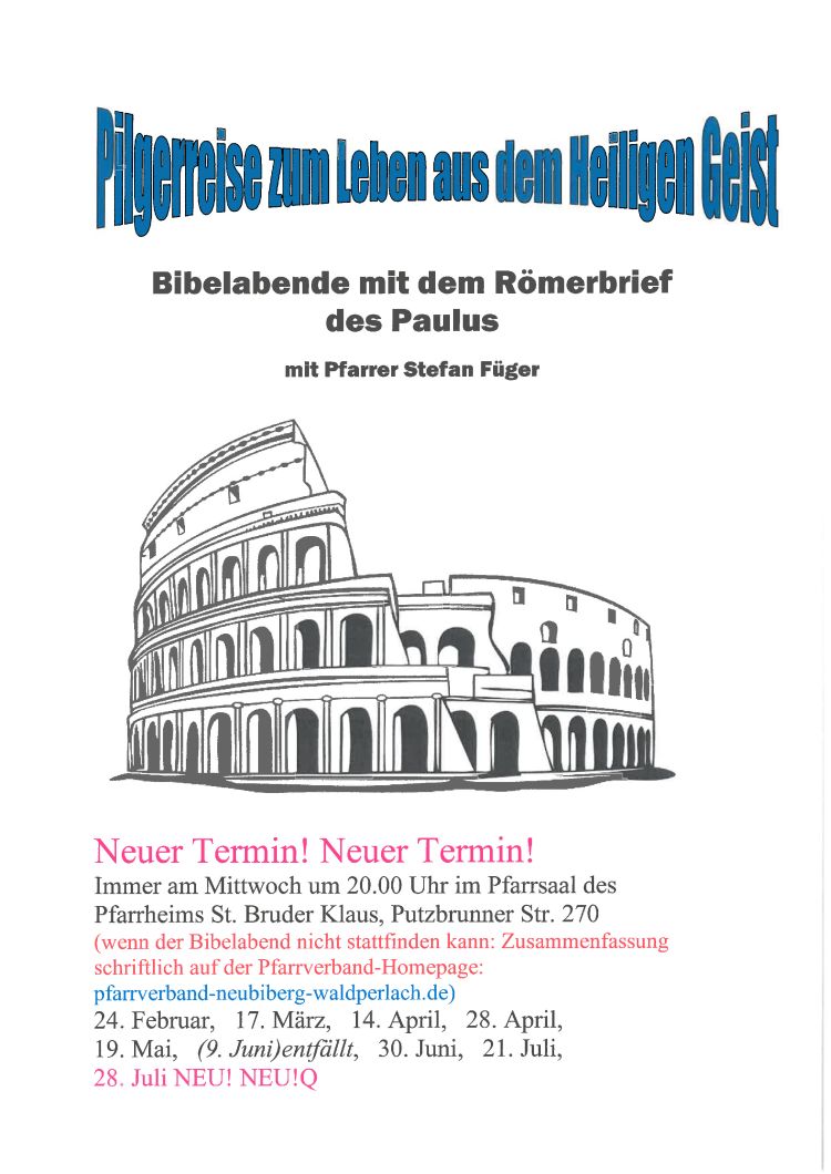 Wenn der Bibelabend nicht stattfinden kann: Zusammenfassung schriftlich auf der Pfarrverband Homepage, siehe