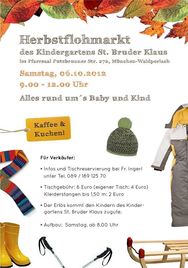 Herbstflohmarkt des Kindergartens St. Bruder Klaus im Pfarrsaal Putzbrunner Str. 272, München-Waldperlach
