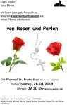Weitere Informationen finden Sie am Schriftenstand in der Kirche ... mehr Liebe Kinder, liebe Eltern, wir laden euch ganz herzlich zu unserem Kinderwortgottesdienst ein. Unser Thema diesmal: Von Rosen und Perlen