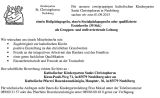 Für die ... mehr Für unseren zweigruppigen katholischen Kindergarten suchen wir zum 01.09.2013 eine/n Heilpädagoge/in, eine/n Sozialpädagogen/in oder qualifizierte Erzieher/in (39 Std.) als Gruppen- und stellvertretende Leitung