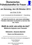 Ort: Pfarrsaal St. Bruder Klaus, Putzbrunner Straße 272 Datum: Sonntag, 28.04.2013 Uhrzeit: 09.30 Uhr (Bitte pünktlich!) ... mehr Einladung zum ökumenischen Gottesdienst am Samstag, den 13. April 2013, 18.00 Uhr in der Corneliuskirche