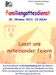 Bitte Zeitumstellung ... mehr Familiengottesdienst am 20.10.2013 um 10.30 Uhr zum Thema "Lasst uns miteinander feiern". Zum Gottesdienst am Kirchweihsonntag lädt das Familiengottesdienstteam mit Dr. Ploch die Schulkinder mit ihren Eltern und Geschwistern, die Jugendliche und Erwachsenen des Pfarrverbands ganz ... mehr Kolpingtreffen, Gäste sind herzlich willkommen