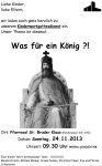 der katholischen Pfarrei Rosenkranzkönigin am Sonntag, den 8. Dezember 2013. Beginn ist um 10.30 Uhr im Pfarrheim, Kaiserstr. 4b. Eingeladen sind alle ... mehr Liebe Kinder, liebe Eltern, wir laden euch ganz herzlich zu unserem Kinderwortgottesdienst ein. Unser Thema diesmal: Was für ein König?!