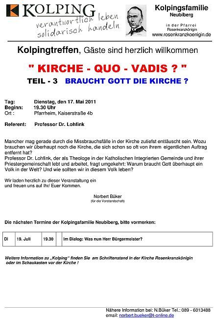Kirche - quo - vadis (Teil 3)? 17.05.2011