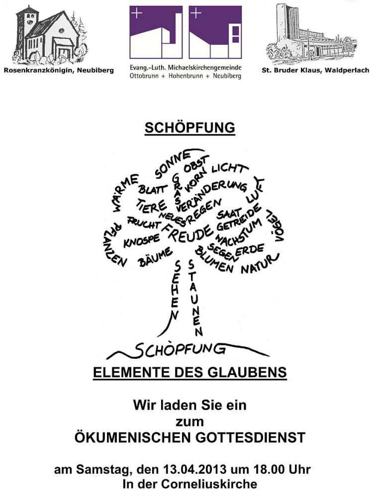 Einladung zum ökumenischen Gottesdienst am Samstag, den 13. April 2013, 18.00 Uhr in der Corneliuskirche