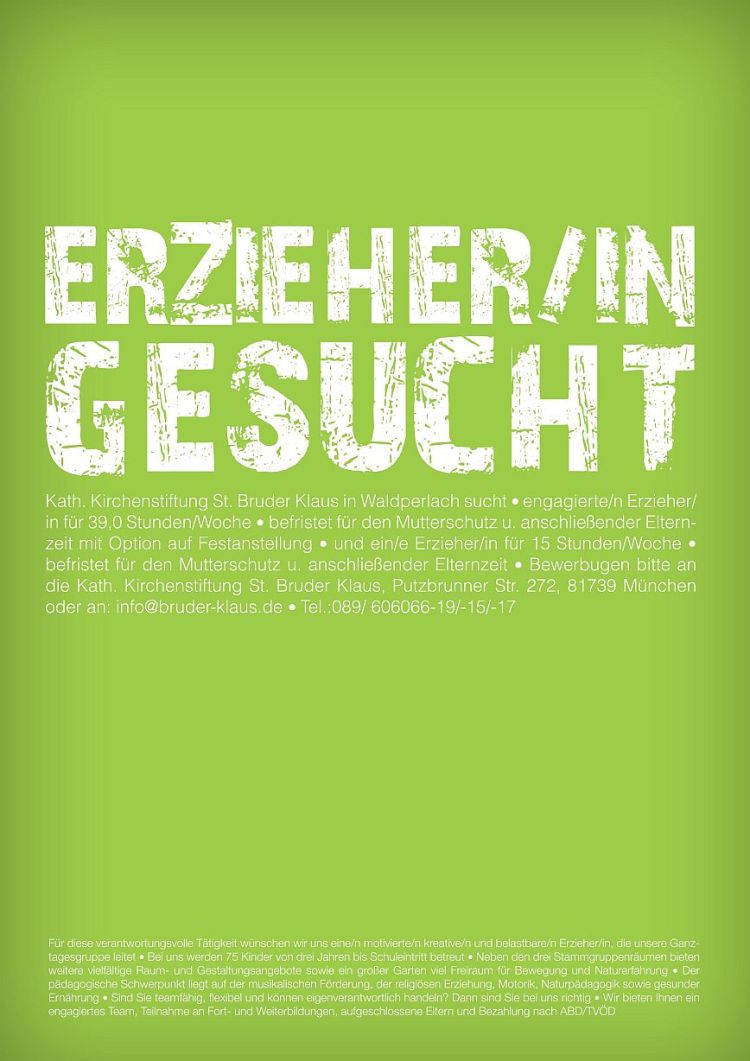 b) ein/e engagierte/n Erzieher/in für 15 Stunden/Woche, befristet für den Mutterschutz u. anschließender Elternzeit