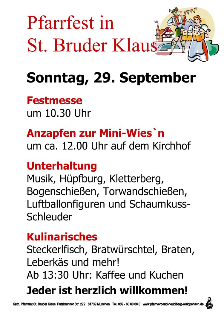 Am Sonntag, den 29. September 2013, Beginn mit einer Festmesse um 10.30 Uhr