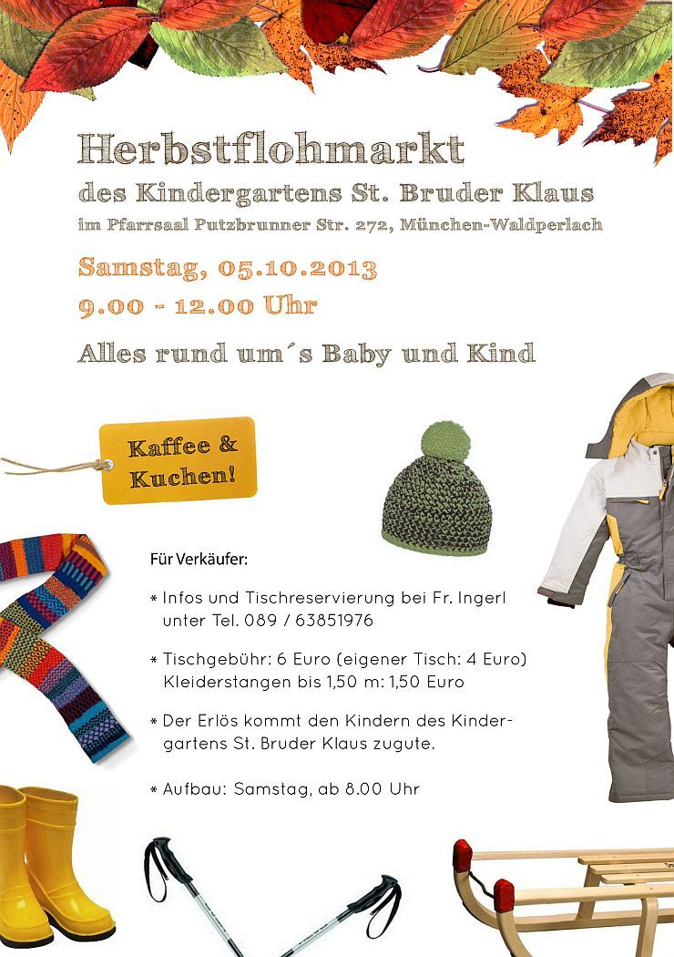 Herbstflohmarkt des Kindergartens St. Bruder Klaus im Pfarrsaal Putzbrunner Str. 272, München-Waldperlach