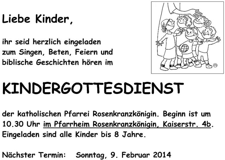 der katholischen Pfarrei Rosenkranzkönigin. Beginn ist um 10.30 Uhr im Pfarrheim Rosenkranzkönigin, Kaiserstr. 4b.