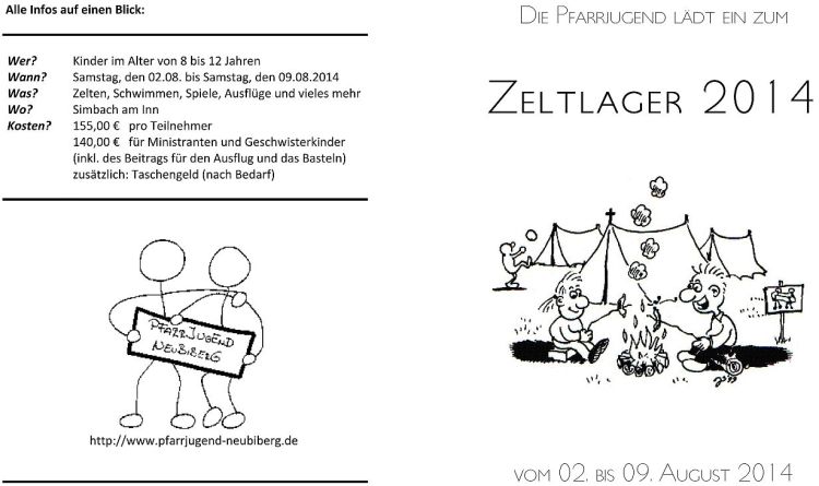 Die Pfarrjugend lädt ein zum Zeltlager 2014 vom 2. bis 9. August 2013