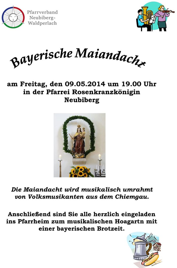 Bayerische Maiandacht am Freitag, den 09.05.2014 um 19.00 Uhr in der Kirche der Pfarrei Rosenkranzkönigin.