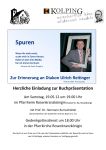 Eintritt frei ... mehr Wir kommen am 20.11.2012 um 19.30 in St. Martin zusammen, um miteinander AGAPE- Feier zu halten. (Was sich hinter diesem Wort verbirgt, entdecken Sie am besten, indem Sie mitfeiern.) Anschließend (ca. 20.00 Uhr) werden uns die Referenten im Pfarrsaal von St. Stephan über Gottesdienste ... mehr Ab Montag kann in den beiden Pfarrbüros das Buch "Spuren von Diakon Ulrich Reitinger" ab 10 EUR erworben werden. Der Reinerlös wird im Gedenken an Ulrich Reitinger einem sozialen Projekt zugeführt.  Die gesamte Pfarrgemeinde von Rosenkranzkönigin und St. Bruder Klaus sind gerne nach dem Gottesdienst ins Pfarrheim eingeladen. U.a. werden Neuigkeiten um das Thema "Ökumene" von Herrn Pfarrer Stegmann vorgestellt. |